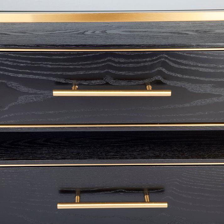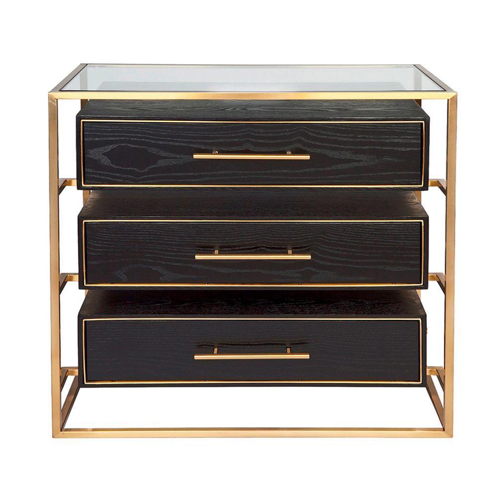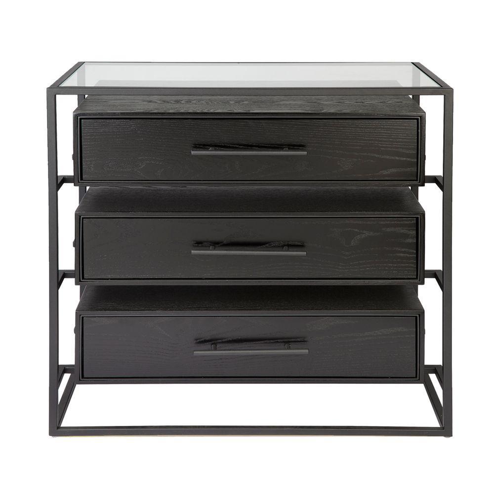 Sleek, sexy and perfectly proportioned, our Vogue range hits all the right notes. Crafted in a black ash floating within a black stainless steel frame and tempered glass top, these quality designer pieces you will truly fall in love with. This unique three drawer chest of drawers brings functional storage and mid-century style to your living room or bedroom with its silhouette shape.