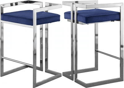 Gallery Blue Velvet Greek Key Brass Dining Chair