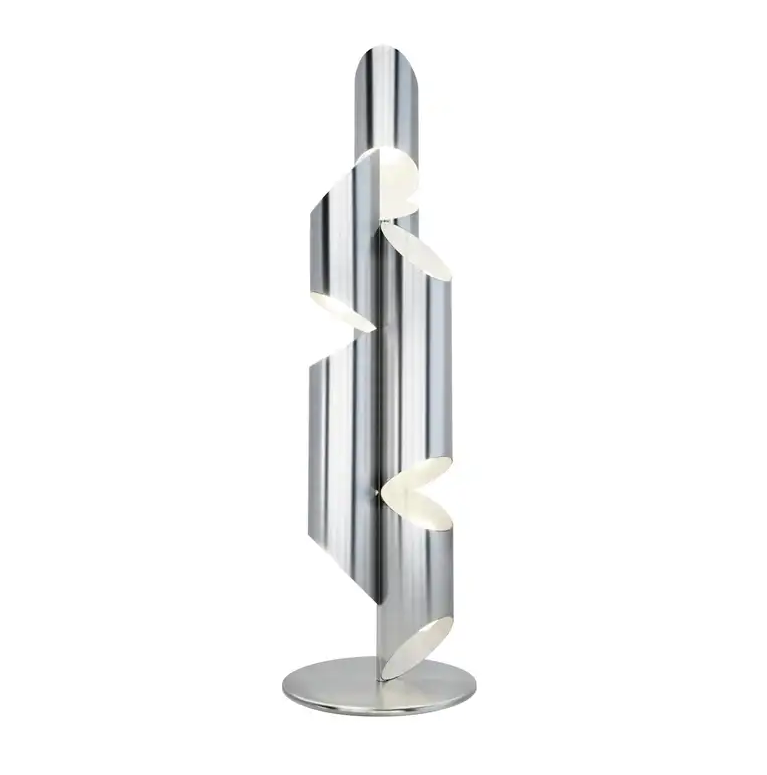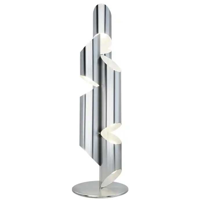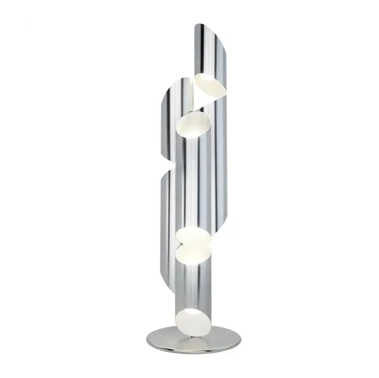 Inspired by the pipes of a church organ, this sculptural floor lamp lamp is crafted from stainless steel in brushed chrome finish. Incandescent light fills each pipe and exits through strategically placed slits, creating a warm and inviting ambiance.