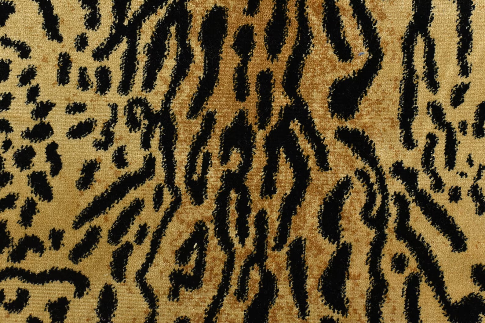 Striking Visual Impact: The gold background serves as a dramatic canvas for the black “tiger stripe” pattern. The cut velvet technique creates a beautiful play of light and shadow, making the design pop with a stunning 3D effect.
