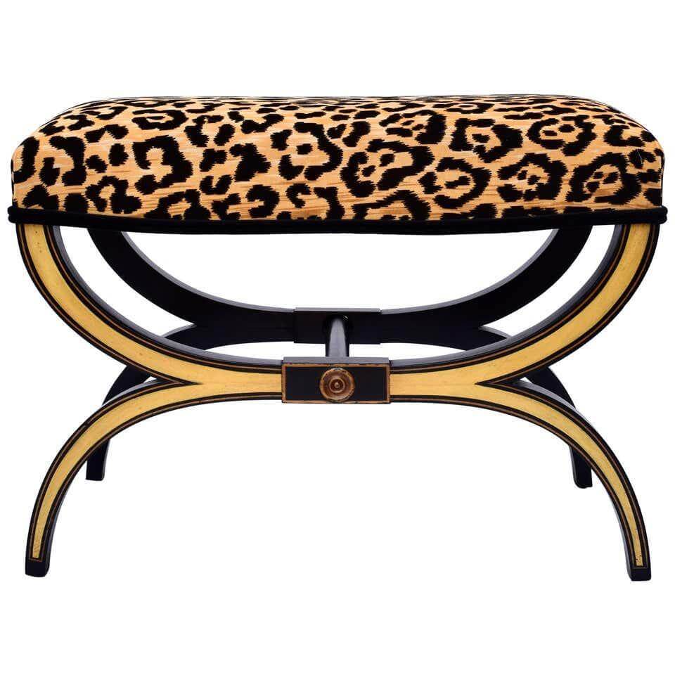 Xavier Leopard Velvet Gold Stool