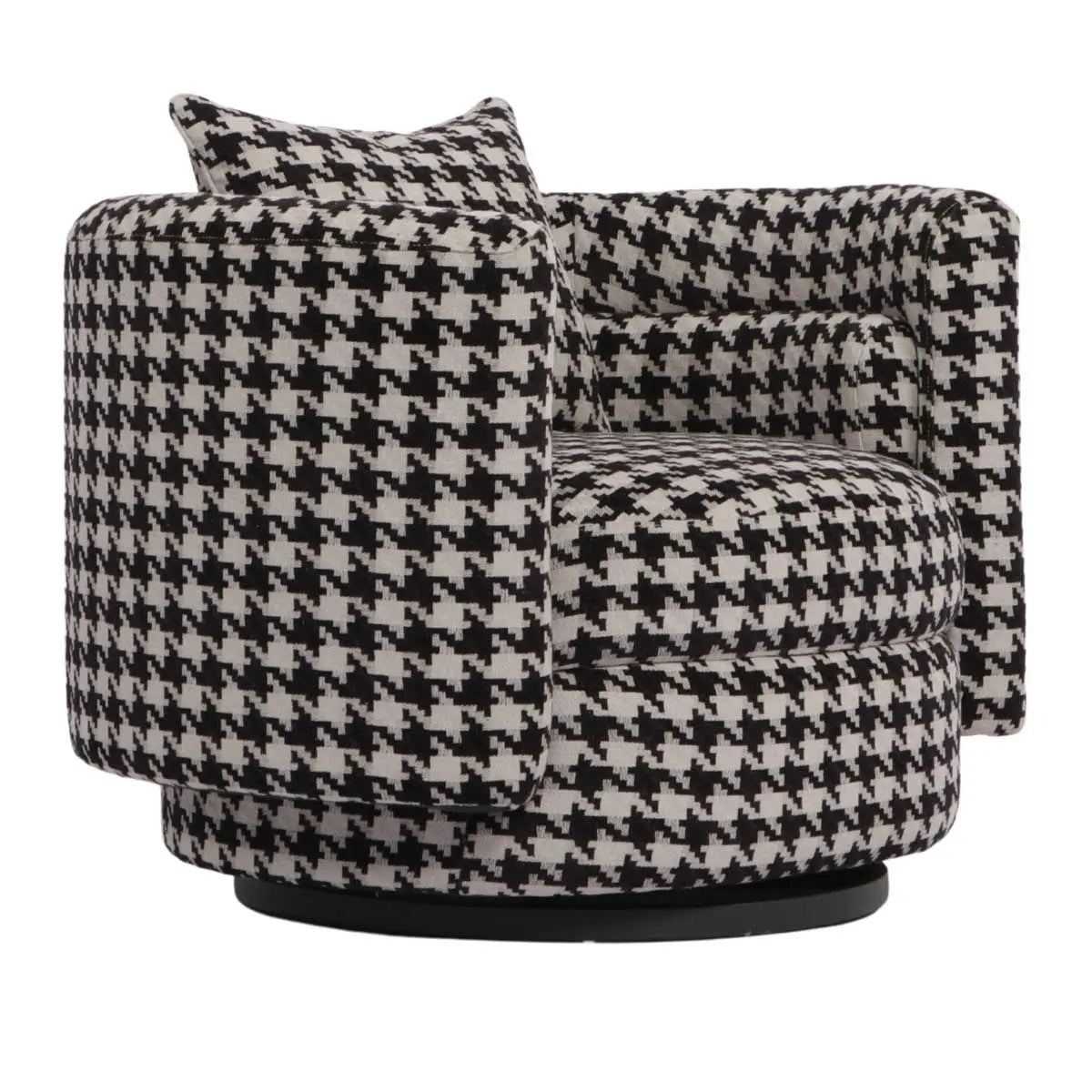 Drawing on contour lines and upholstered in unique textural tweed like fabric, the Yardley swivel armchair makes the perfect statement piece.