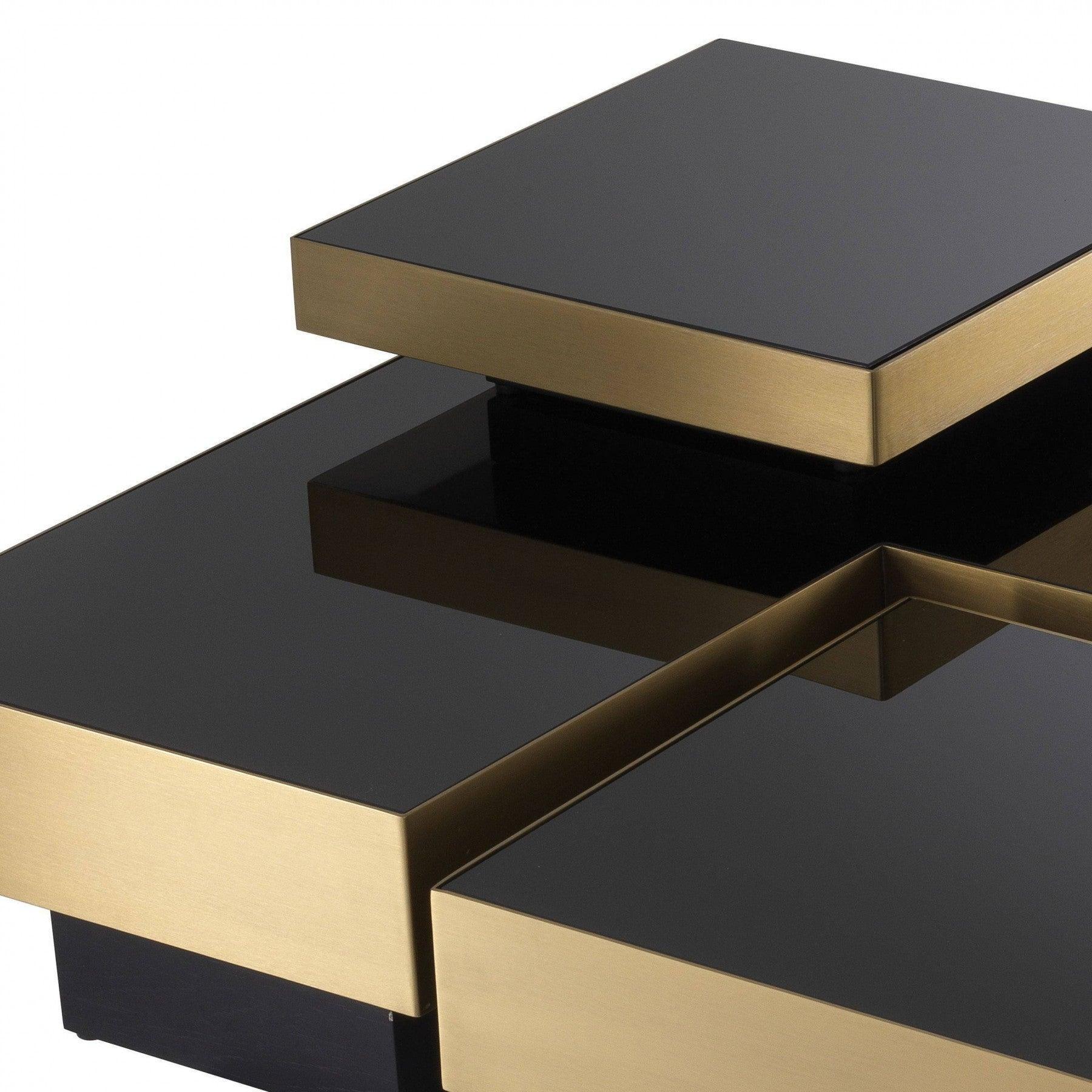 York Brushed Brass Black Glass Coffee Table Set