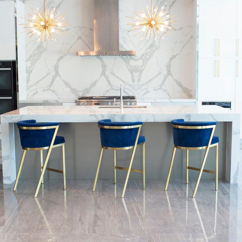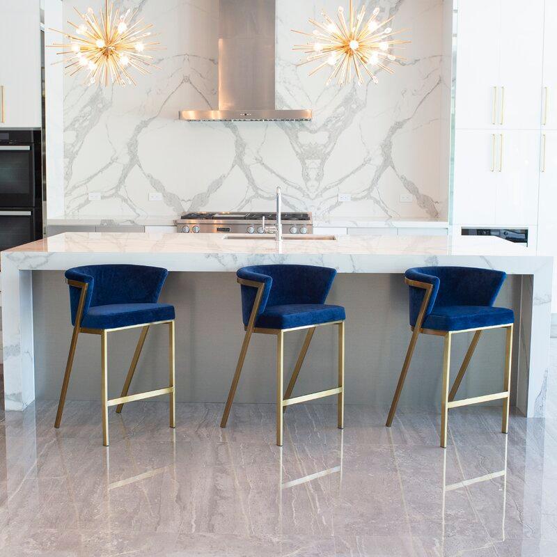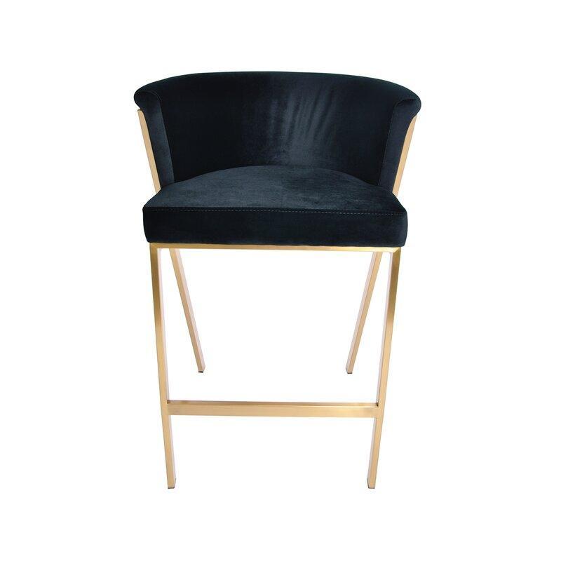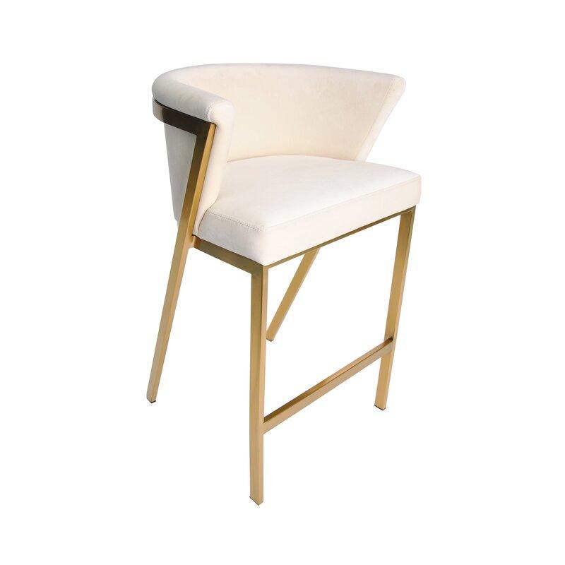 Zanetti Light Grey Velvet Gold Barstool