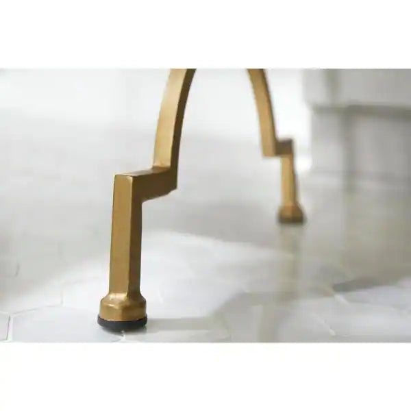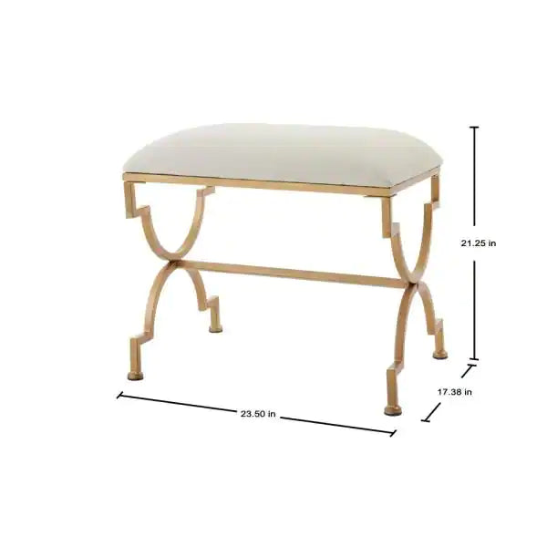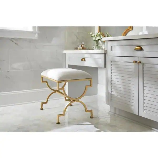 Ivory Upholstered Metal Vanity Stool with Gold Base (23.50 in W. X 21.25 in H.)