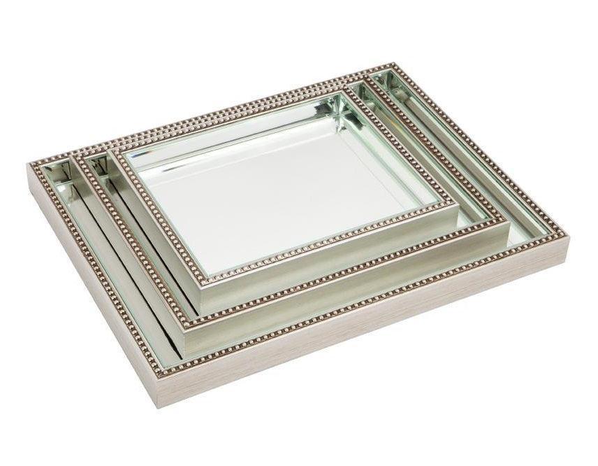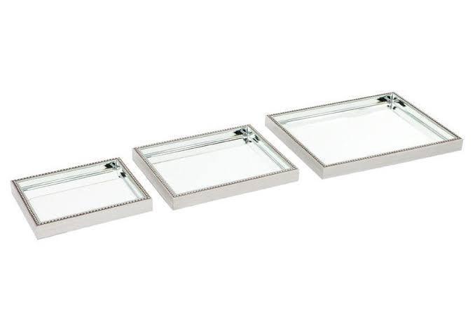 Add glamour to your home with a this 3 Piece luxury mirrored beaded tray ser. Featuring fully bevelled mirrored edges which reflect light around your home, making a striking statement. The perfect décor tray to display your precious items.