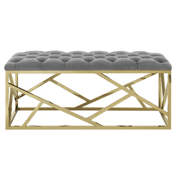 • Zig Zag Polished Gold Velvet Ottoman Bench